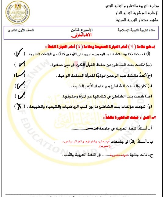 - أسئلة التربية الإسلامية بالحل
