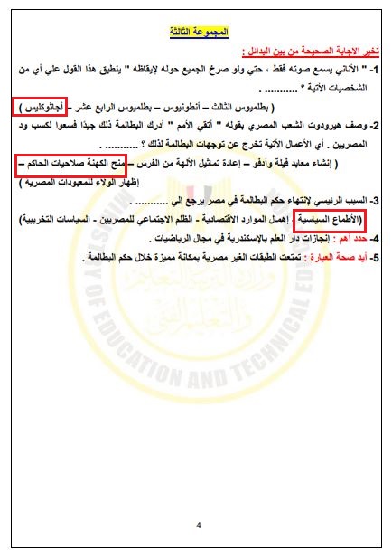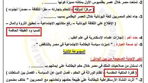 - إجابات تقييم التاريخ الصف الأول الثانوي