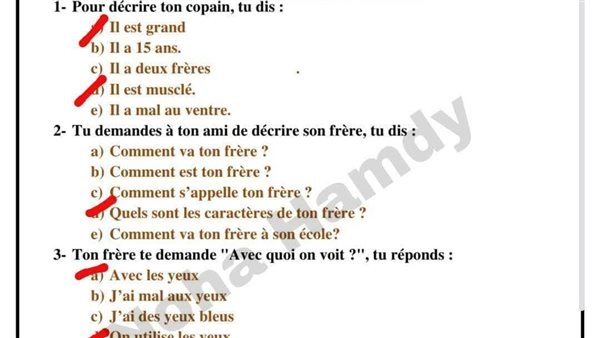 - أهم أسئلة الفرنساوي أولى ثانوي