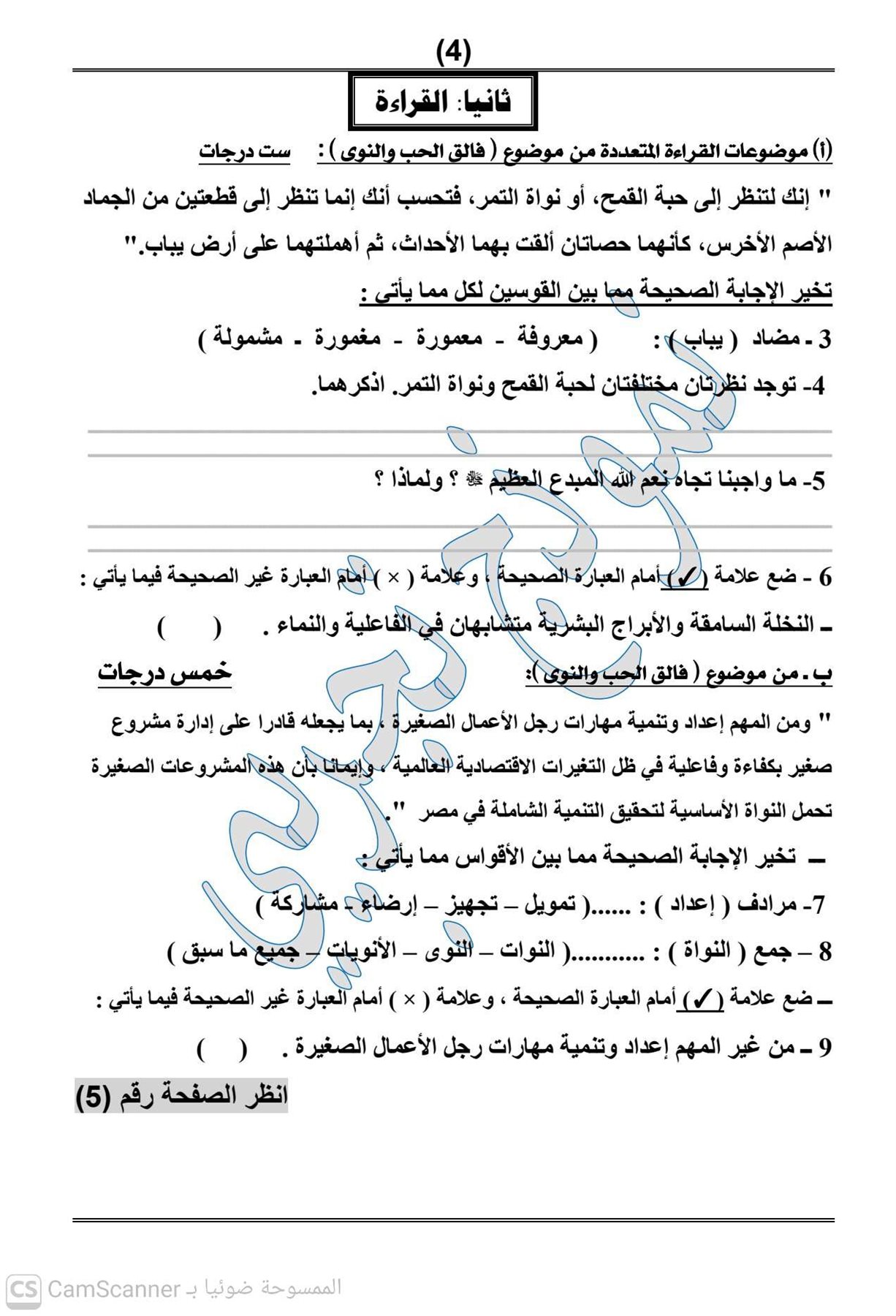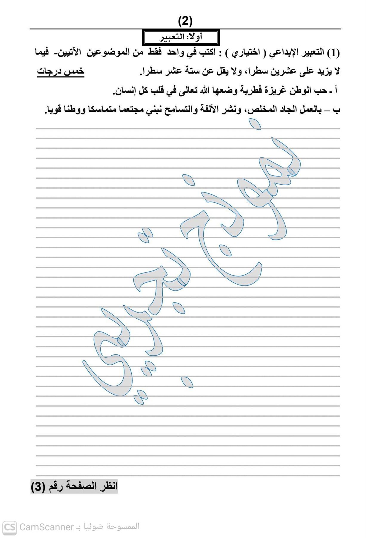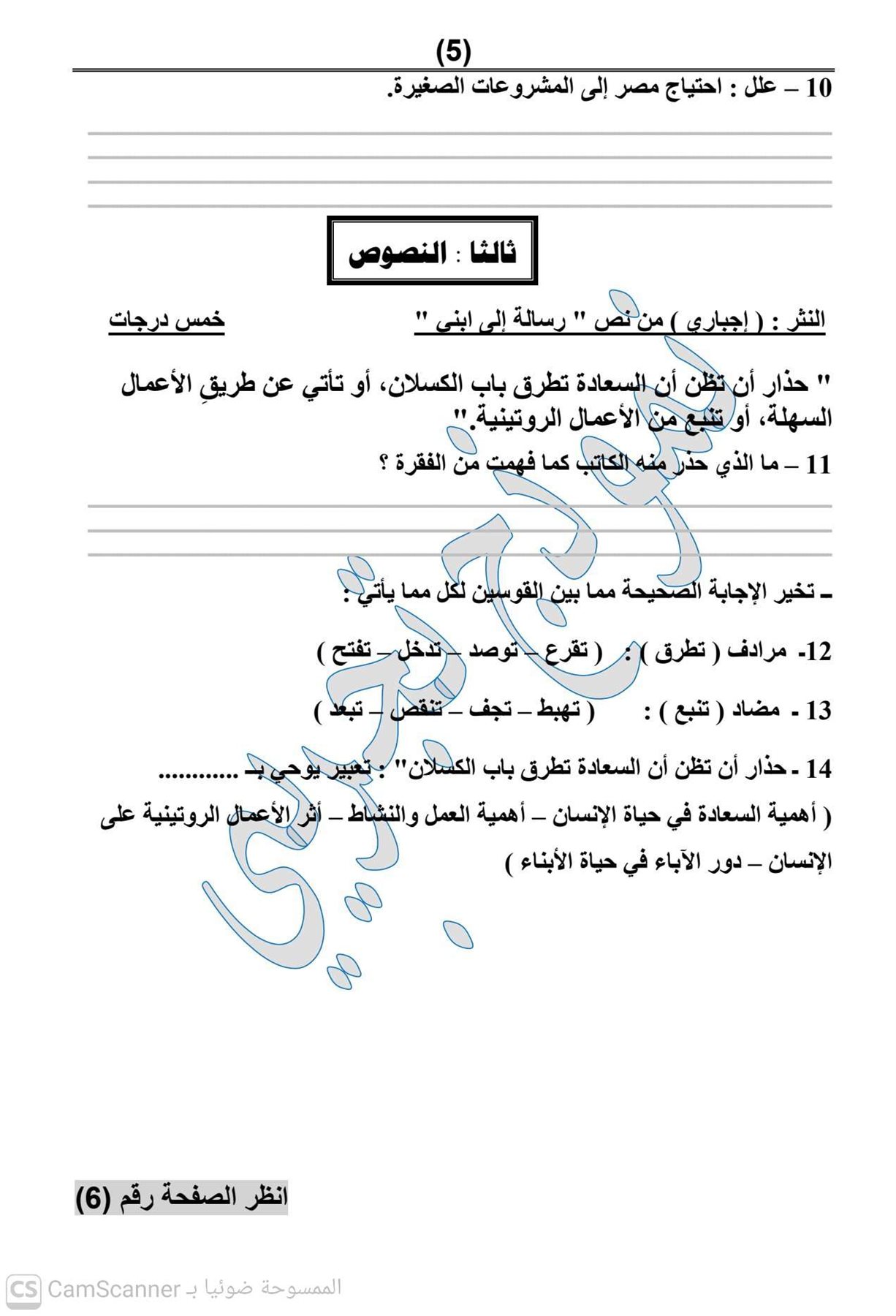- امتحان العربي الصف الثالث الاعدادي