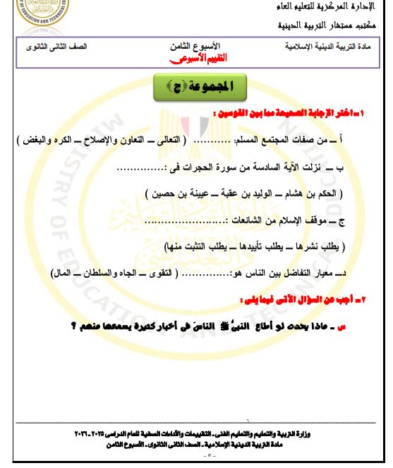 - مراجعة تربية إسلامية ثانية ثانوي 2026