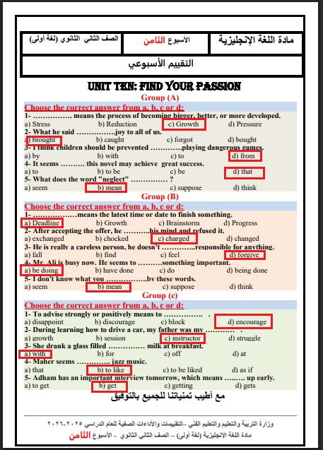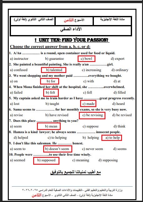 - مراجعة انجليزي الصف الثاني الثانوي 2026