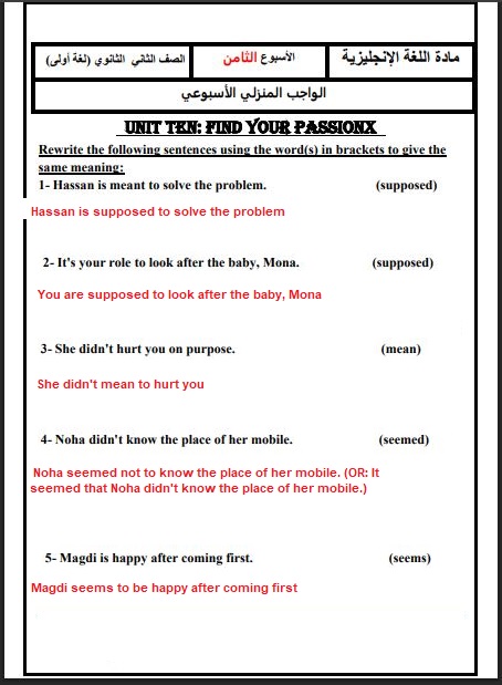 - أهم أسئلة الإنجليزي الصف الثاني الثانوي بالإجابات