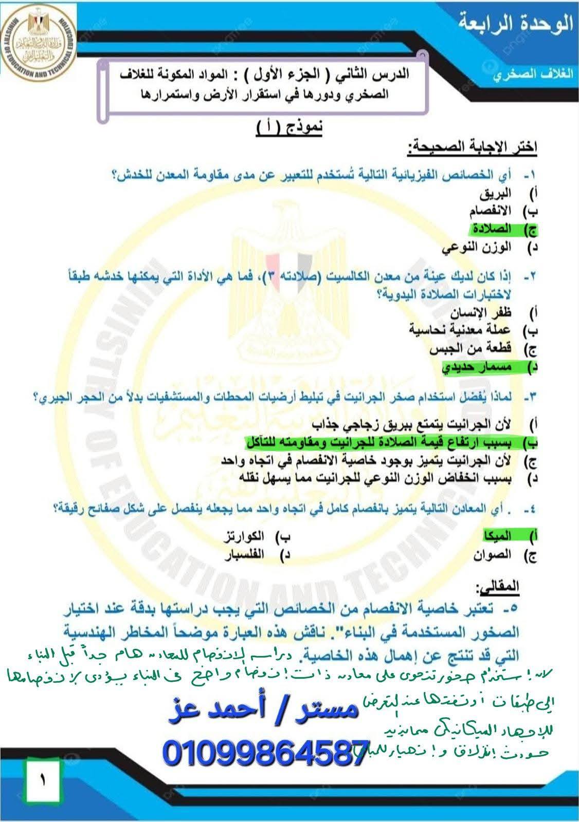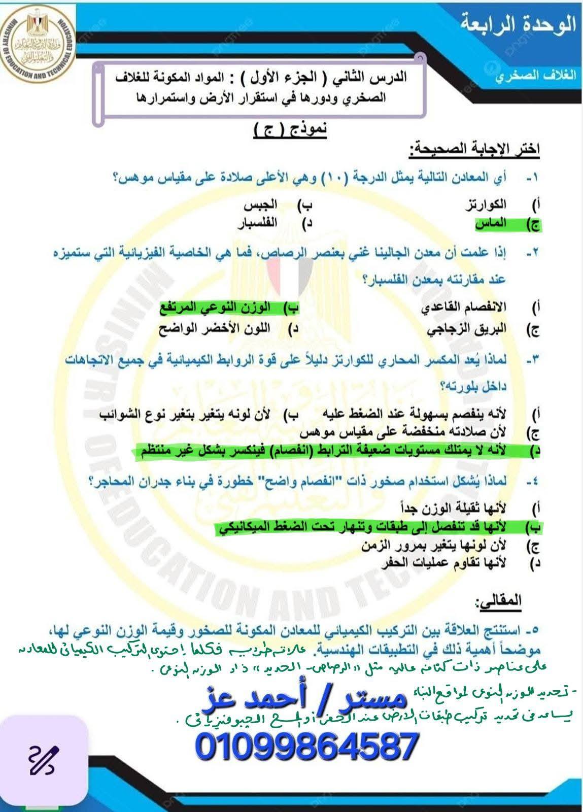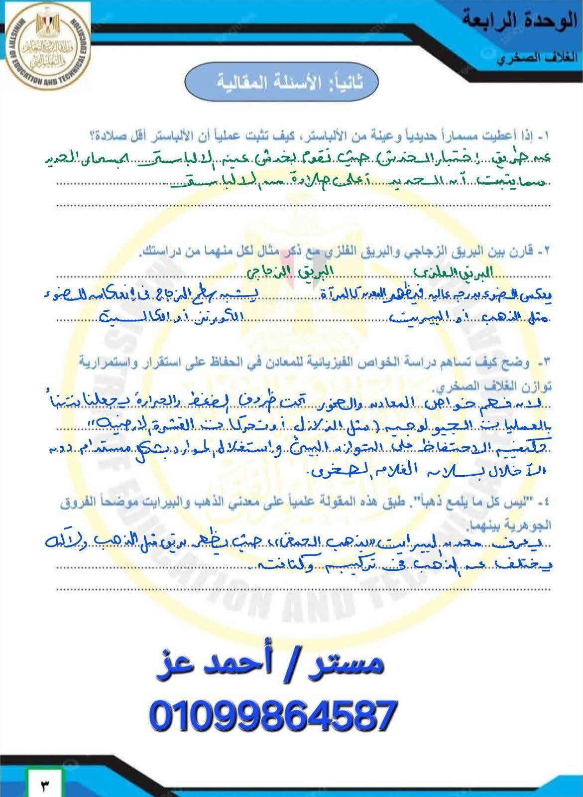 أسئلة متوقعة وإجابات نموذجية في الأسبوع العاشر العلوم المتكاملة أولى ثانوي