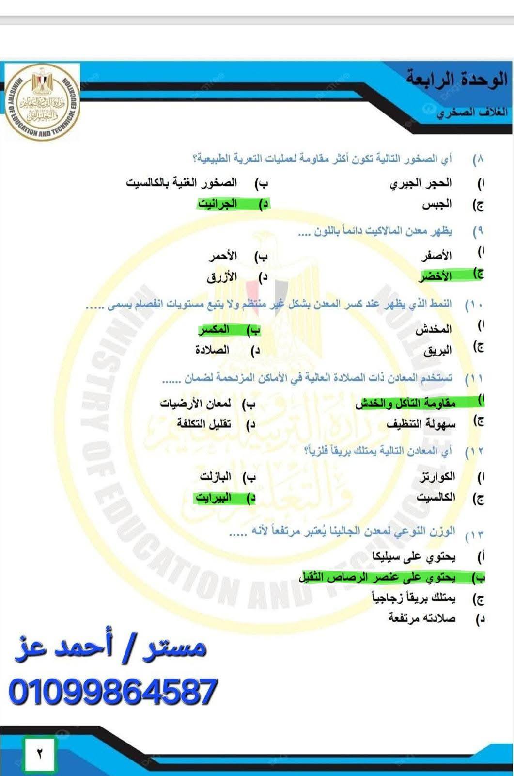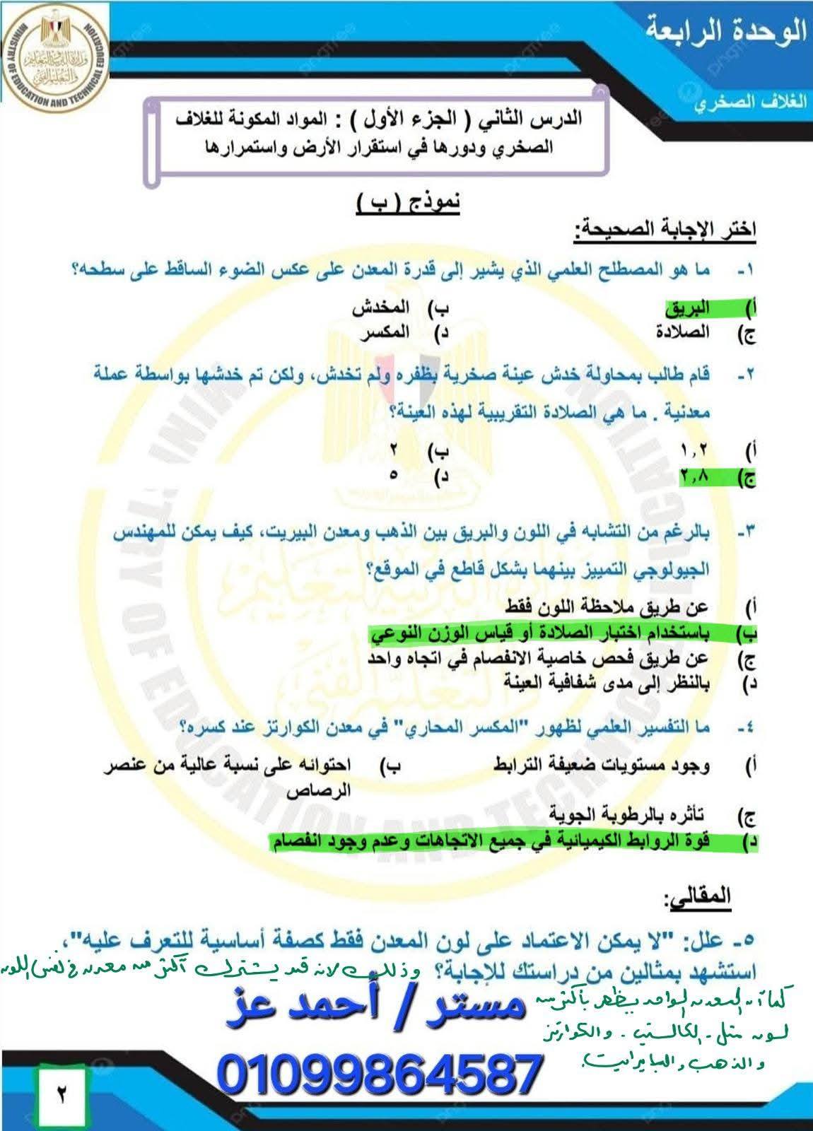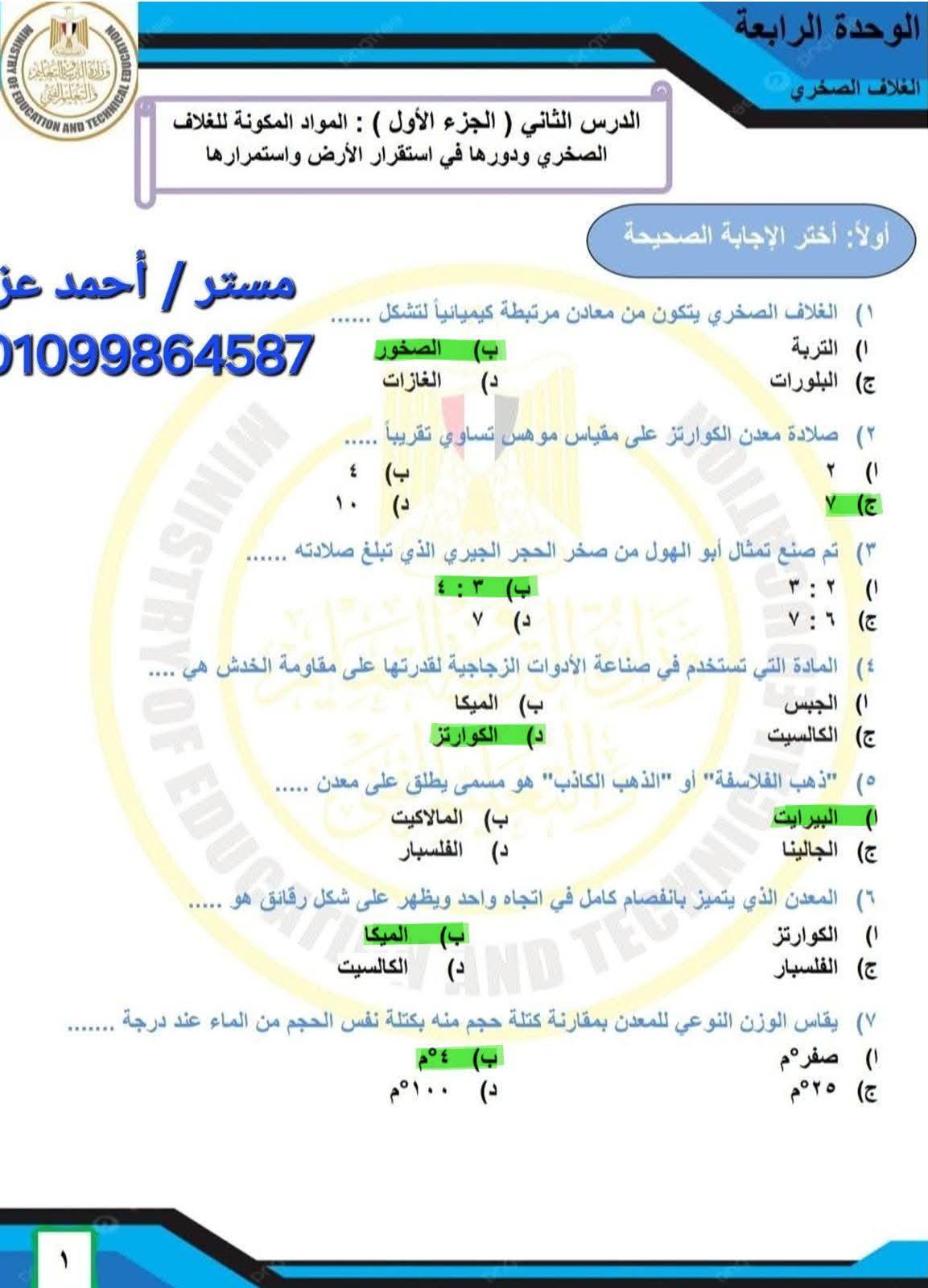 أسئلة متوقعة وإجابات نموذجية في الأسبوع العاشر العلوم المتكاملة أولى ثانوي