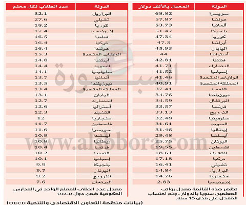 وهذه بعض البيانات التي توضح التفاوت في عمل المعلم حول العالم.