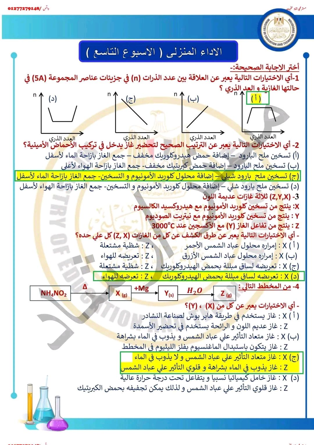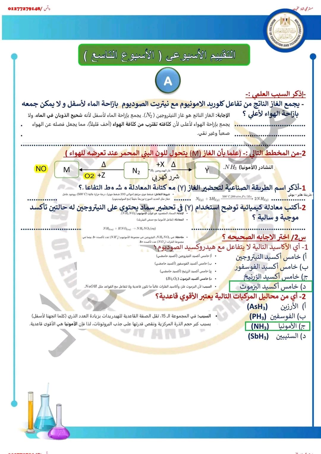 تقييم الأسبوع التاسع كيمياء.. وتوفر الحلول النموذجية فرصة مهمة للطلاب لمراجعة إجاباتهم، والتعرف على الطريقة الصحيحة لحل المسائل الكيميائية، سواء المتعلقة بالمعادلات أو الحسابات أو المفاهيم العلمية المختلفة، مما يساعد على تثبيت المعلومات بشكل أفضل.