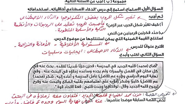لطلاب أولى إعدادي.. بالاجابات أسئلة تقييم الأسبوع الـ 11 لغة عربية ترم ثاني