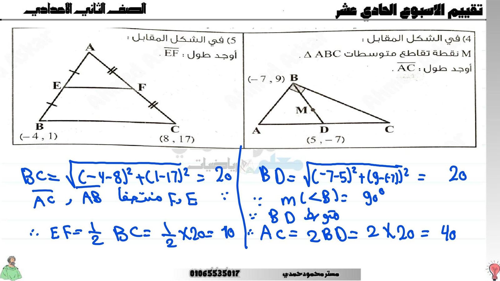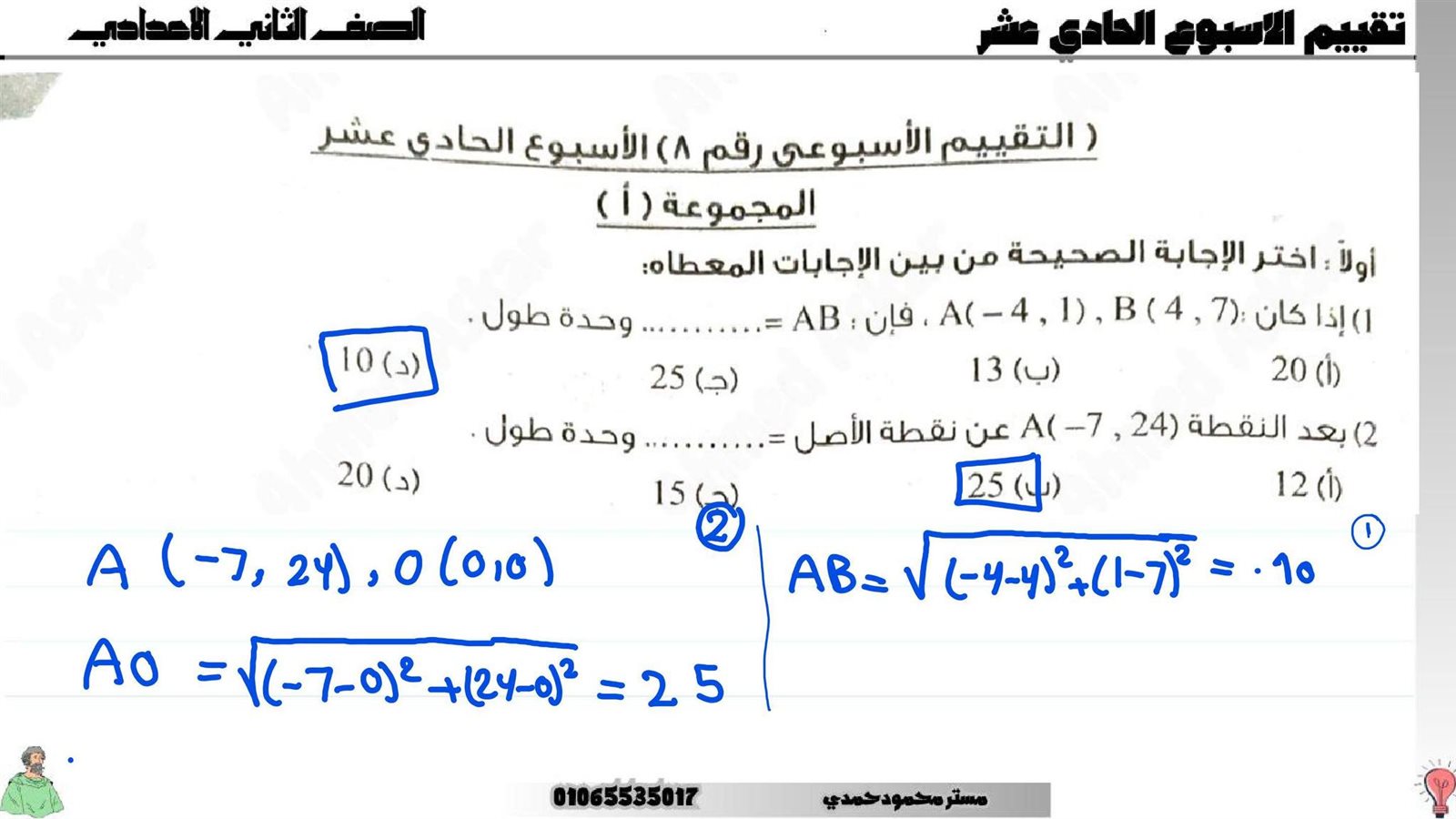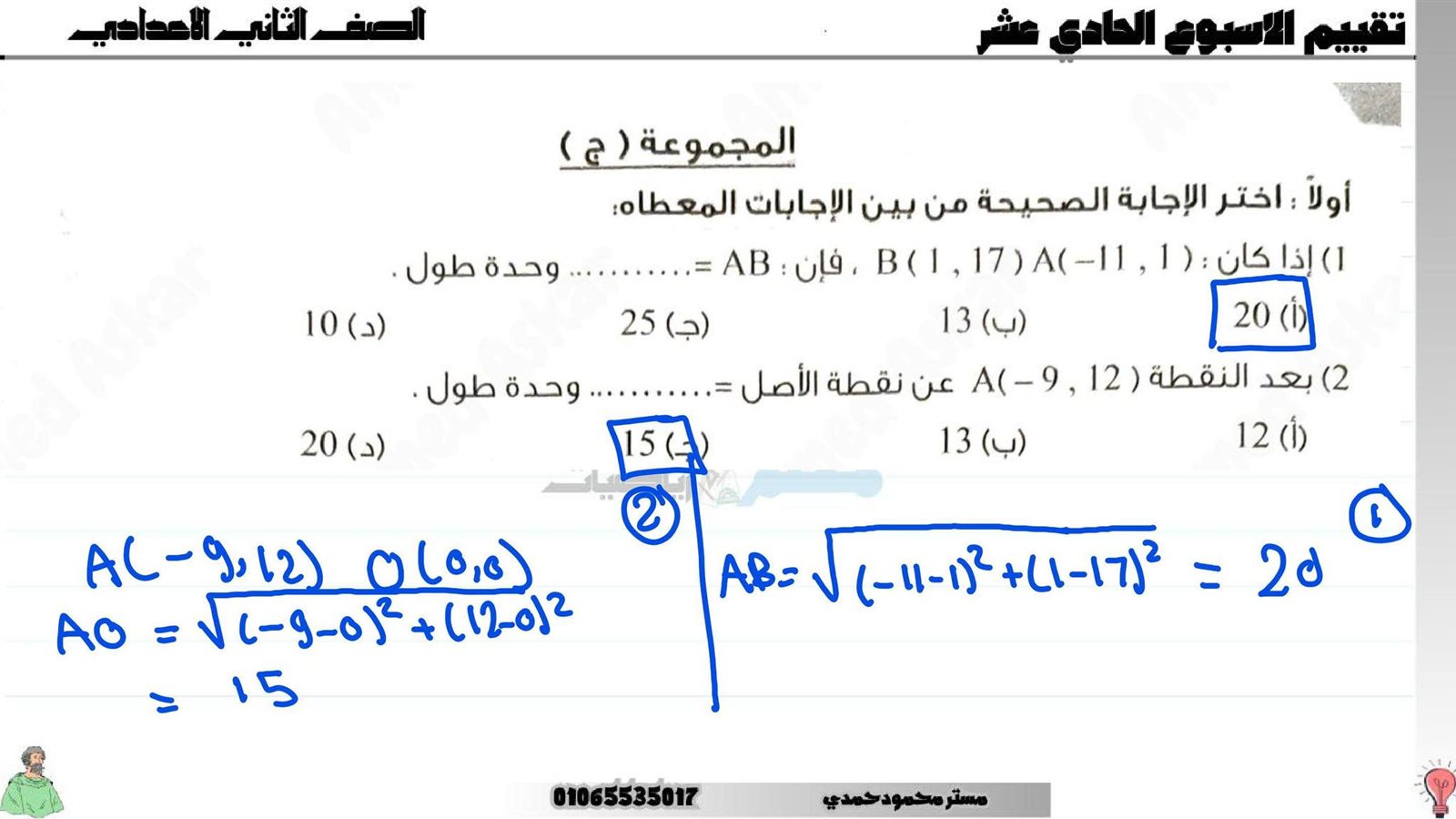 - تدريب رياضيات ثاني إعدادي