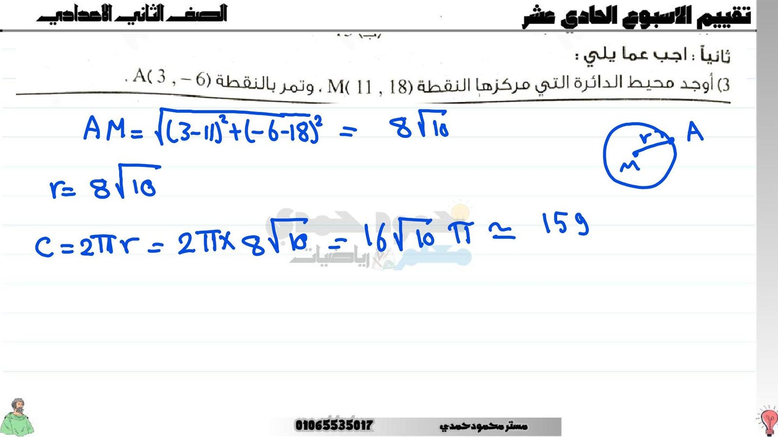 - بالاجابات أسئلة تقييم الأسبوع الـ 11 الرياضيات