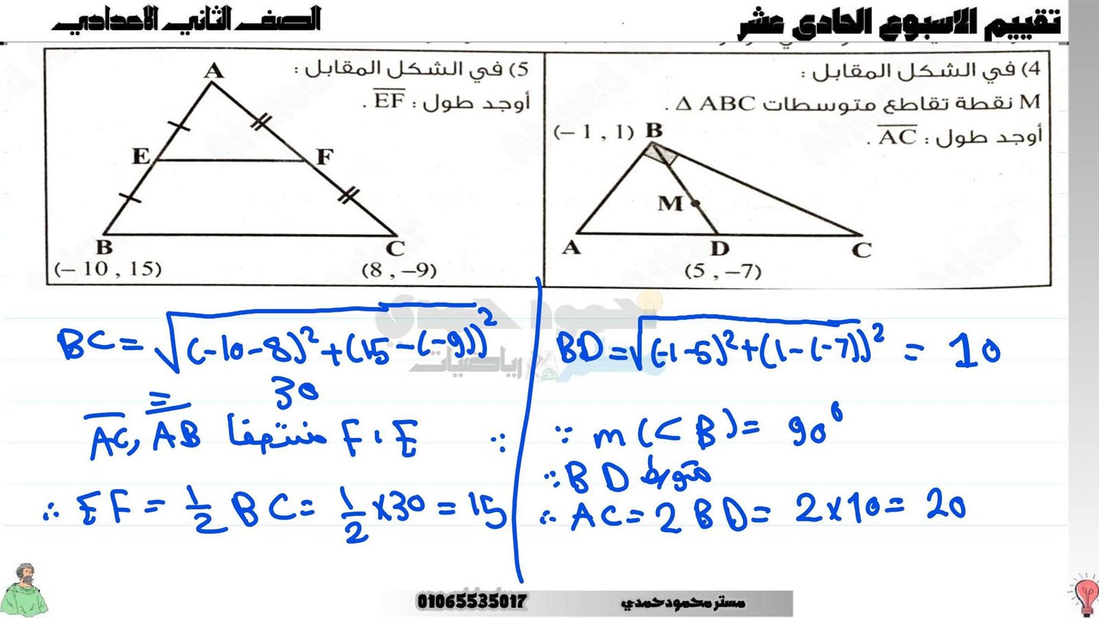- مراجعة شاملة رياضيات ثاني إعدادي