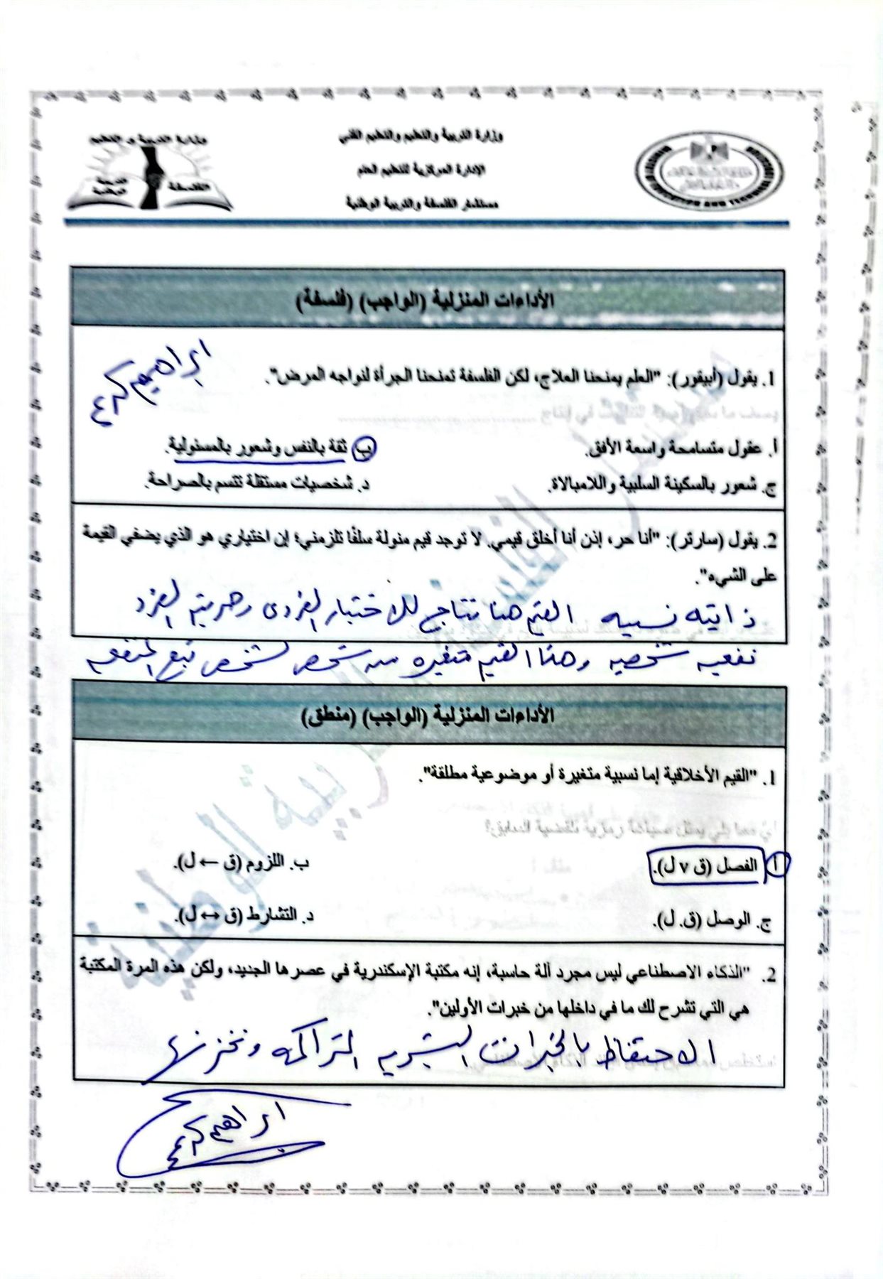 مراجعة شاملة تتضمن الإجابات النموذجية فلسفة ومنطق