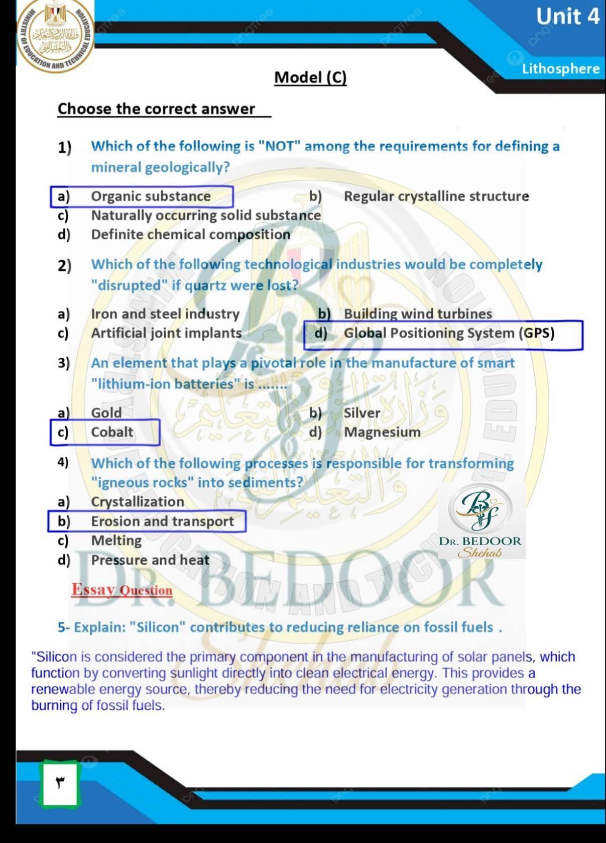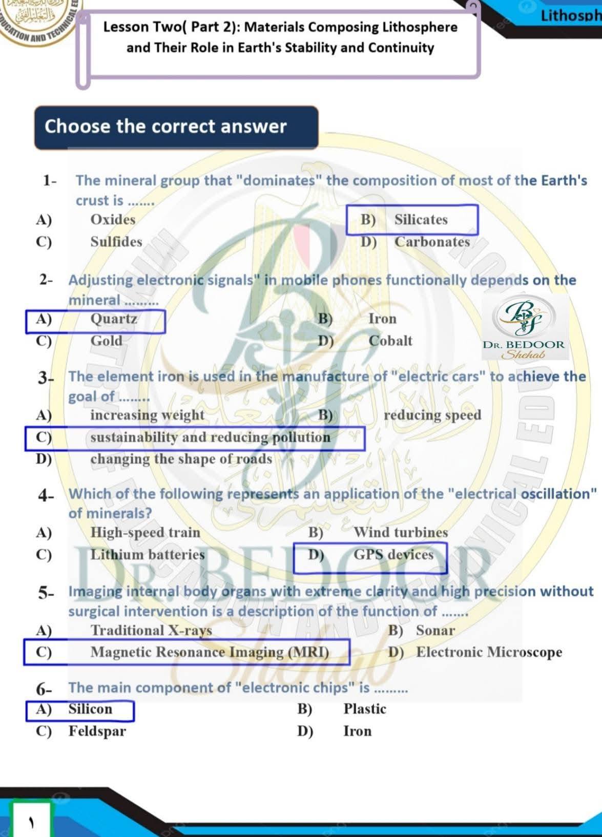 أسئلة متوقعة وإجابات نموذجية في الأسبوع العاشر العلوم المتكاملة أولى ثانوي