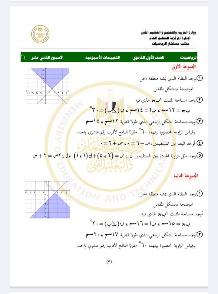حل تقييم الأسبوع الـ12 رياضيات أولى ثانوي.. وبذلك يصبح حل تقييم الأسبوع الـ12 أداة مهمة تساعد الطلاب على تحسين مستواهم في مادة الرياضيات وتحقيق أفضل النتائج خلال الترم الثاني.