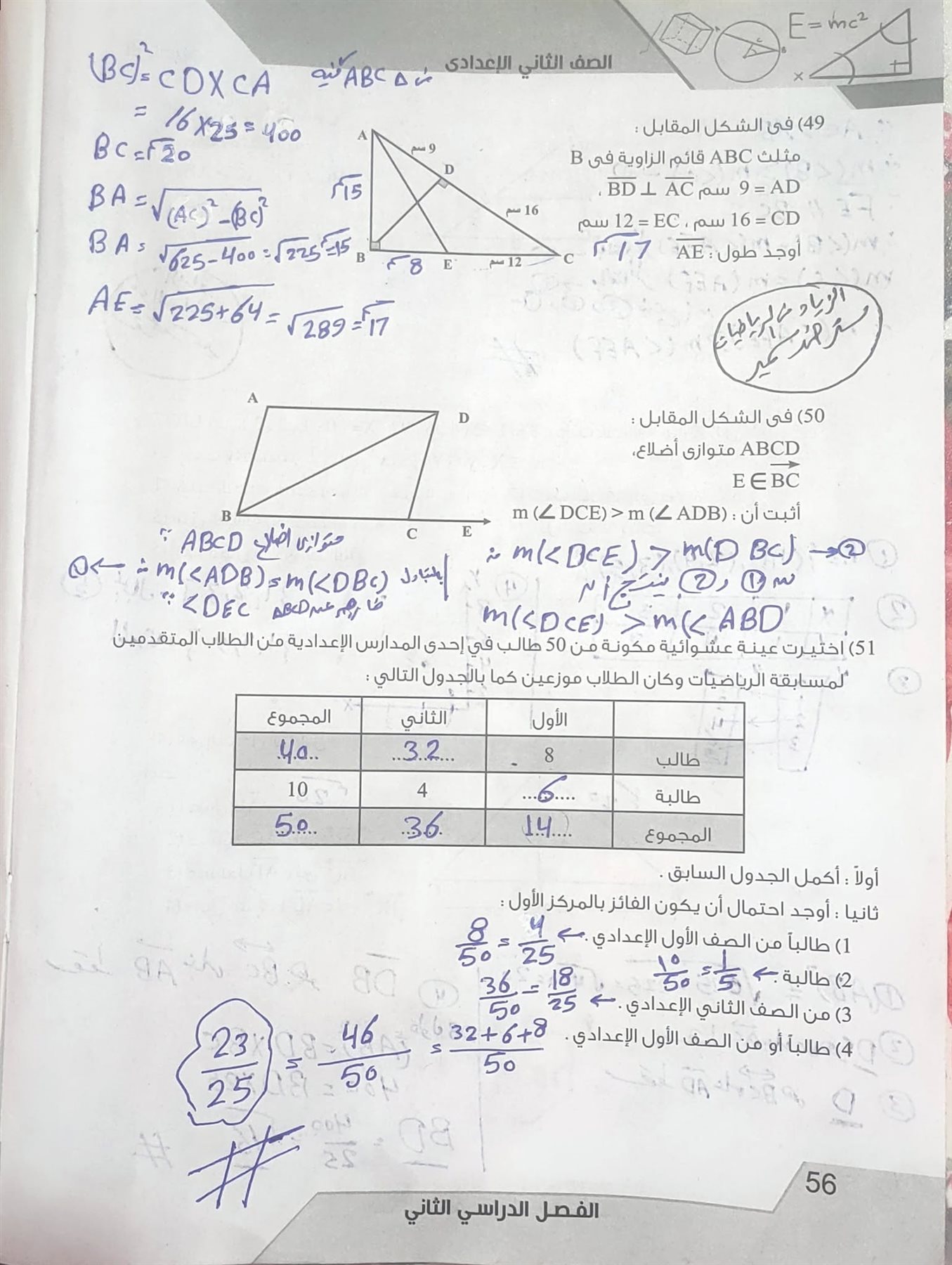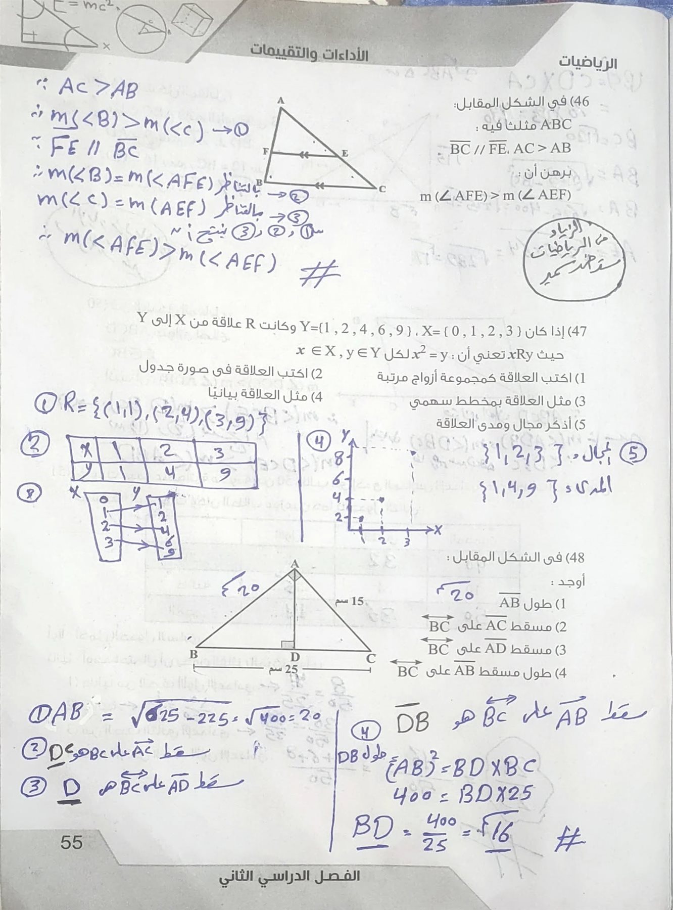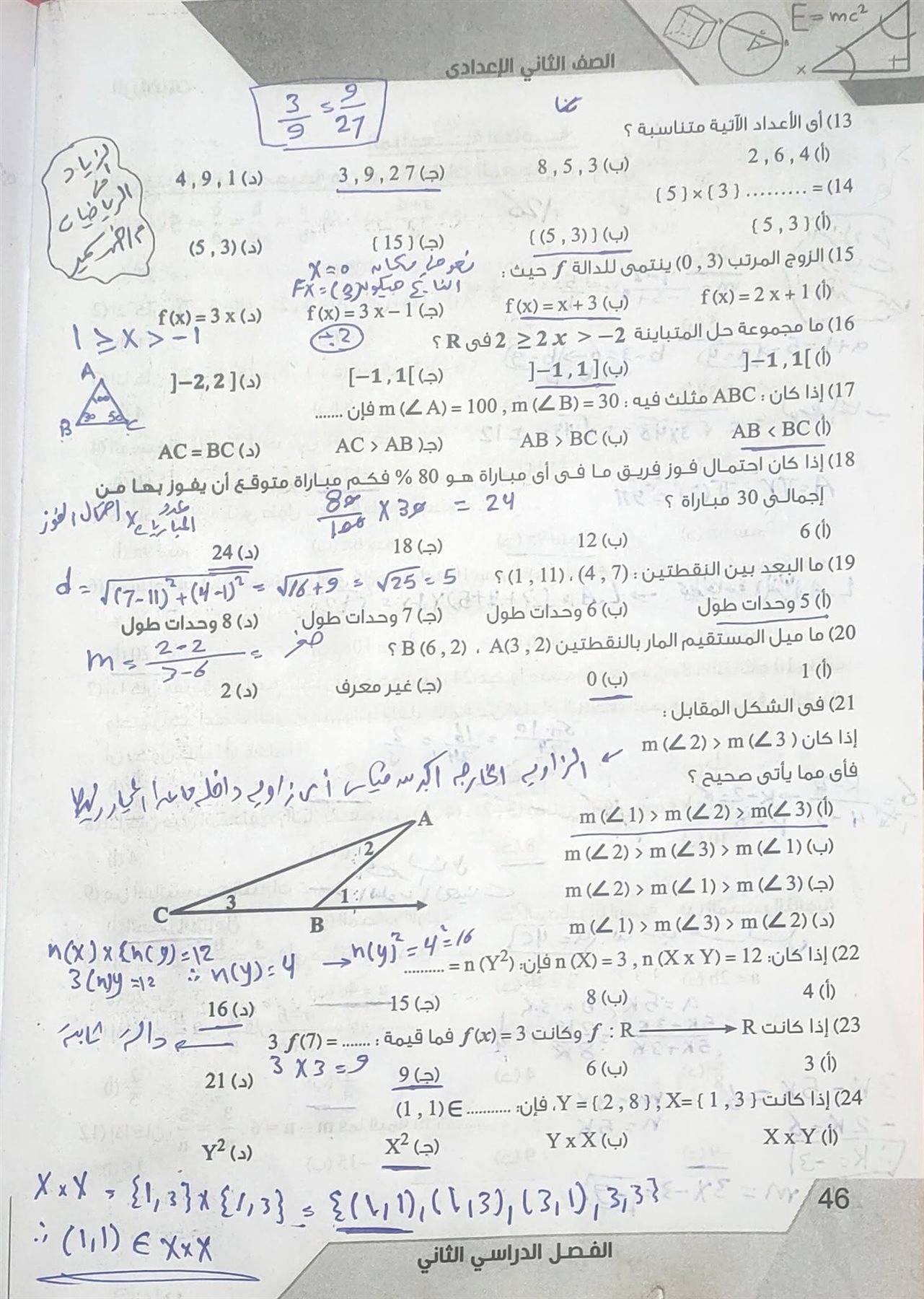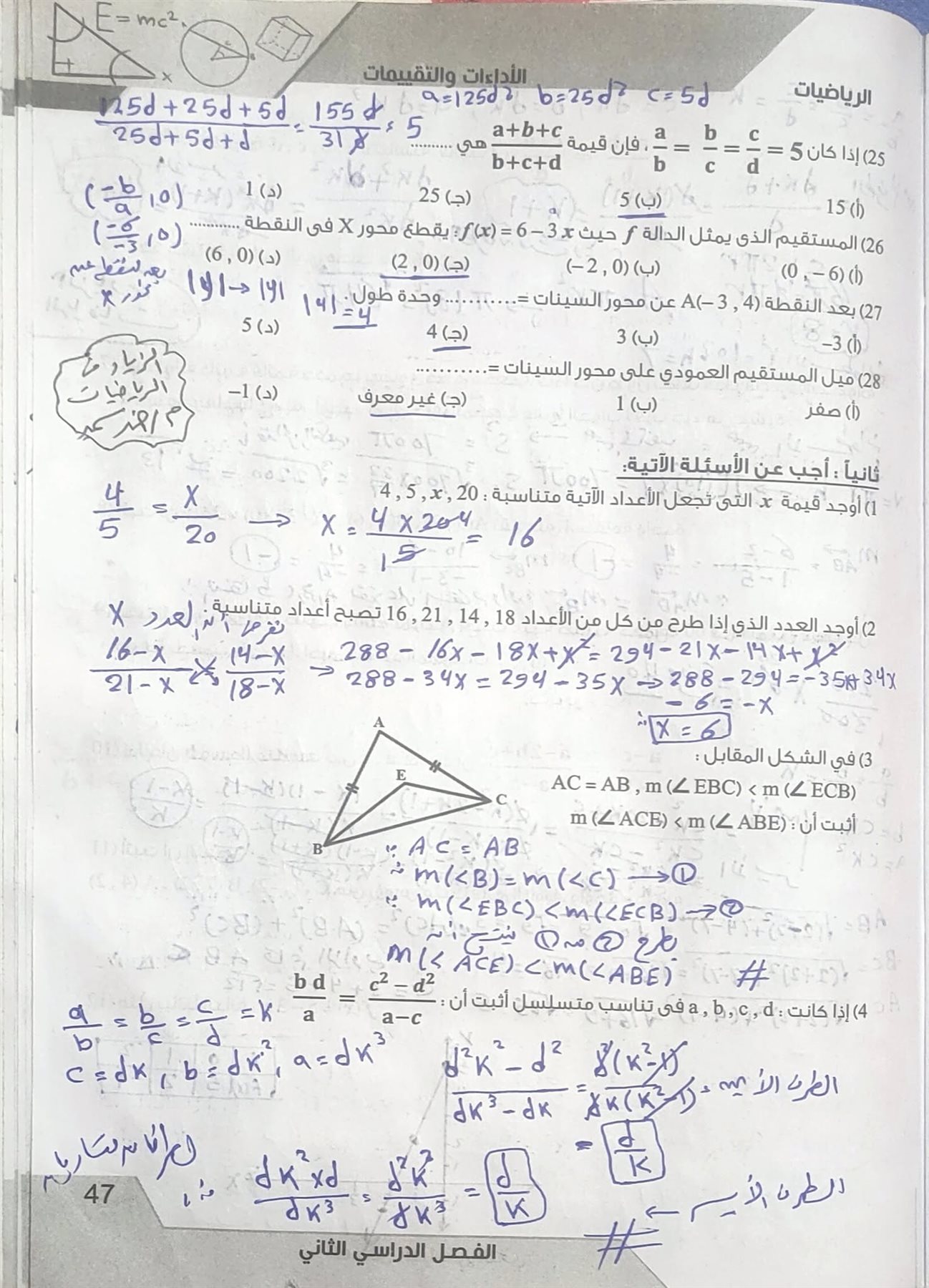 مراجعة الهندسة بالاجابات.. حل الأسئلة بأنفسكم قبل الاطلاع على الإجابة.