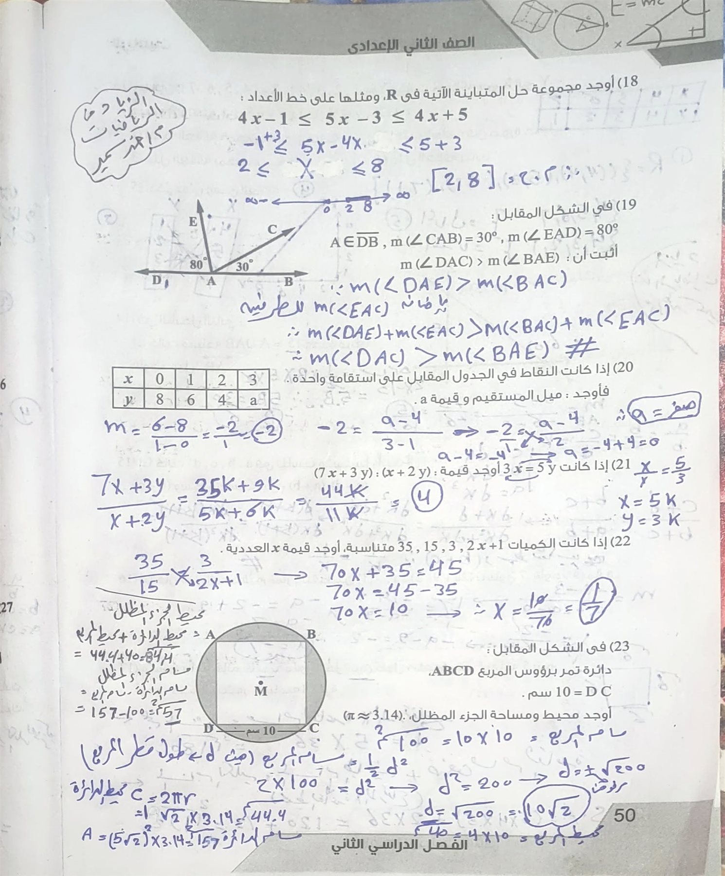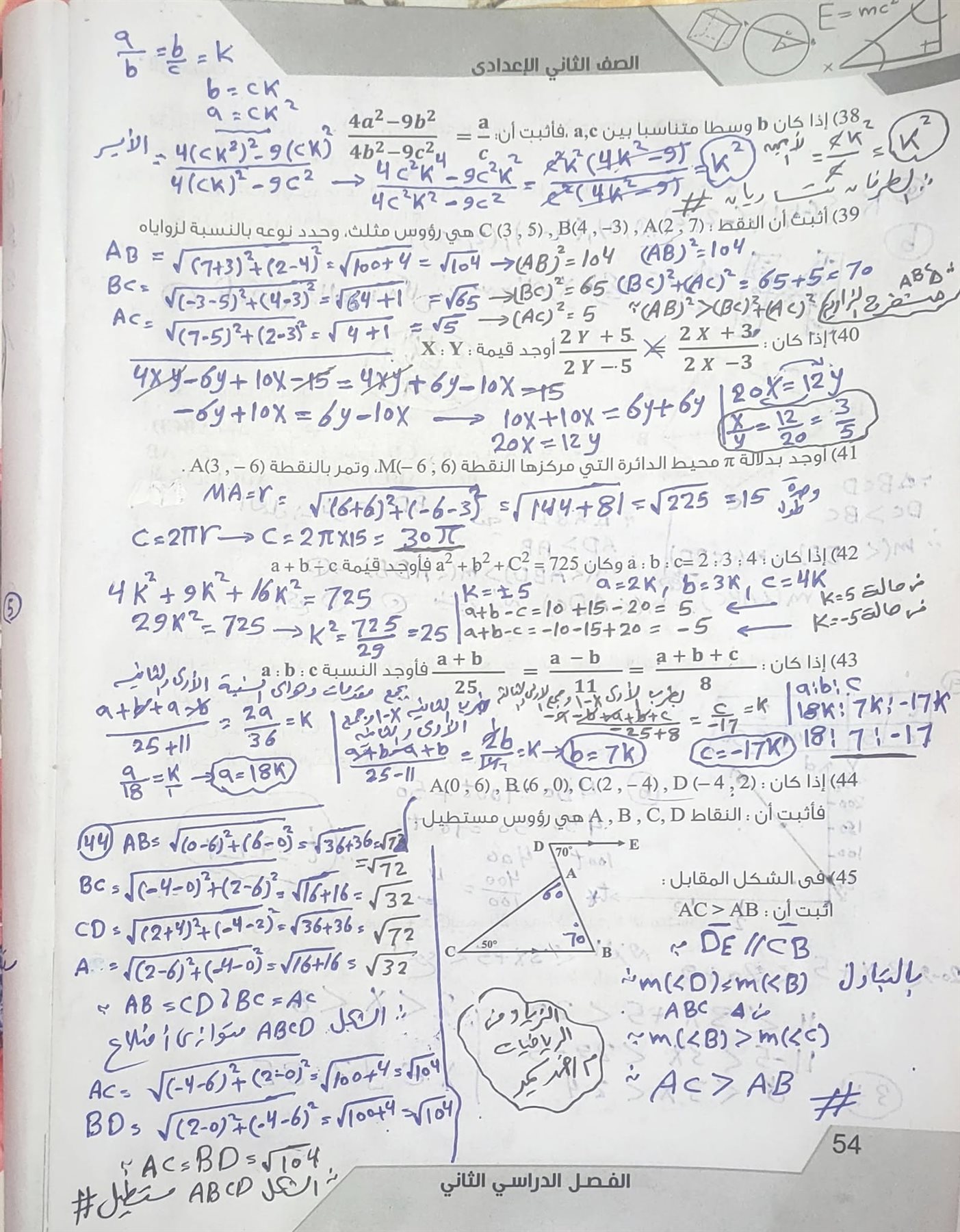 - أسئلة الهندسة بالإجابات ثانية إعدادي