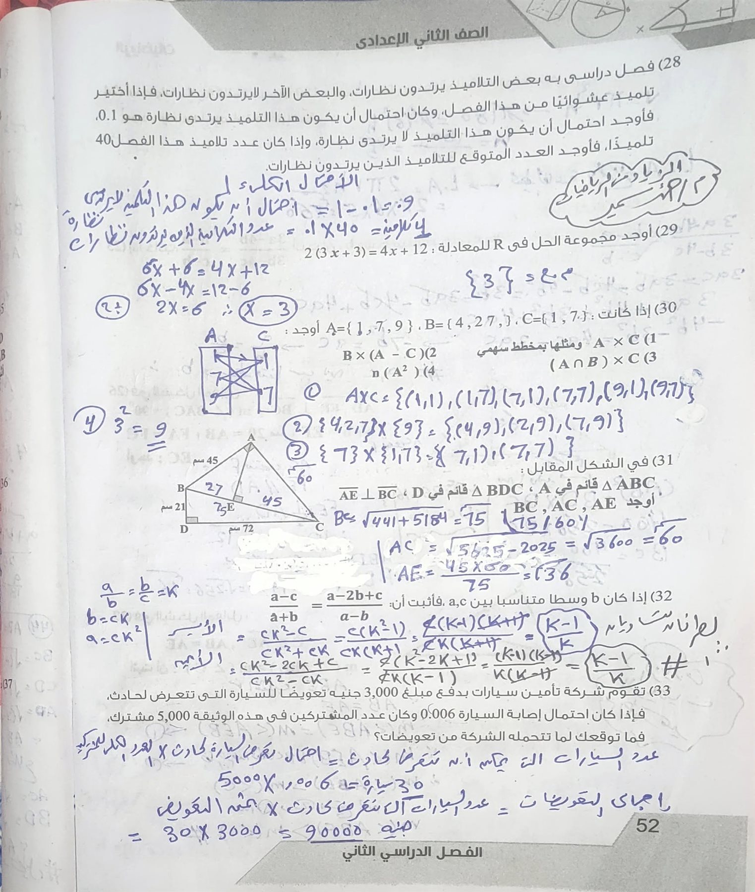 مراجعة الهندسة بالاجابات في 13 ورقة لـ ثانية إعدادي لن يخرج عنها امتحان آخر العام