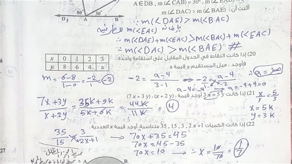 بالاجابات أسئلة تقييم الأسبوع الـ 11 الرياضيات لـ الصف الثاني الإعدادي ترم ثاني