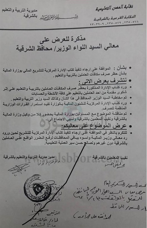 بالمستندات : المالية توافق علي صرف جميع مستحقات المعلمين والعاملين "المجمدة " بتعليم الشرقية
