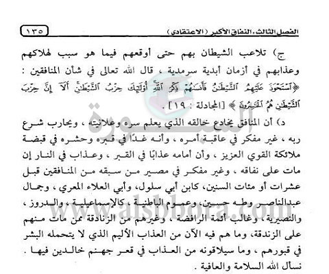 واستكمل النص قائلًا :"ولا شك في حاله وحال أمثاله من الطغاة والظلمة والمنافقين أعظم العظة والعبرة، فقد عاش سنوات محدودة وسيجازى على عمله في هذا الزمن القصير في قعر جهنم ان كان مات على النفاق في أزمان أبدية سرمدية، وهو الآن في قبره تحت التراب في قبضة ملائكة الجبار مرهون بعمله."