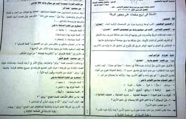 ننشر اسئلة امتحانات اللغة العربية للصف الثالث الاعدادى بمحافظة القاهرة للفصل الدراسى الأول عام 2016/2015.