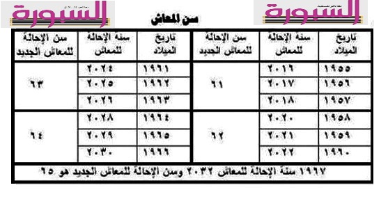 ان الموظف الذى يكون تاريخ ميلاده 1961 سيكون تاريخ خروجه للمعاش وفقا للقانون الجديد عام 2024