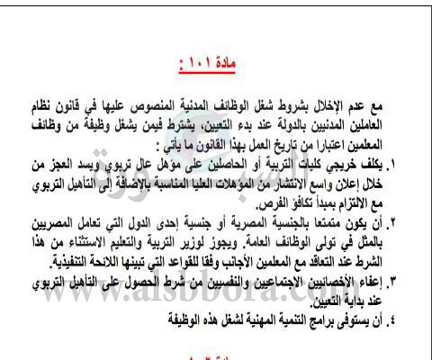 وتنشر " السبورة " نص المادة 101 من قانون التعليم والذي تضمنت