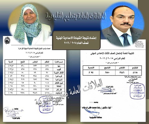 اعتمد اللواء الدكتور رضا فرحات، محافظ القليوبية، وألفت عبد الرحيم فرغلي، مدير مديرية التربية والتعليم، نتيجة الشهادة الاعدادية المهنية نصف العام 2015 / 2016 وبلغت نسبة النجاح 74 % وحصلت إدارة كفر شكر التعليمية على أعلى نسبة نجاح بين الادارات بلغت 83.7 %.