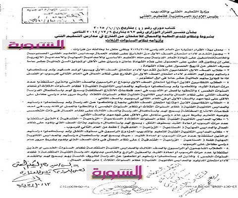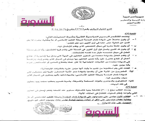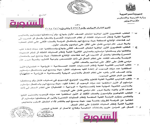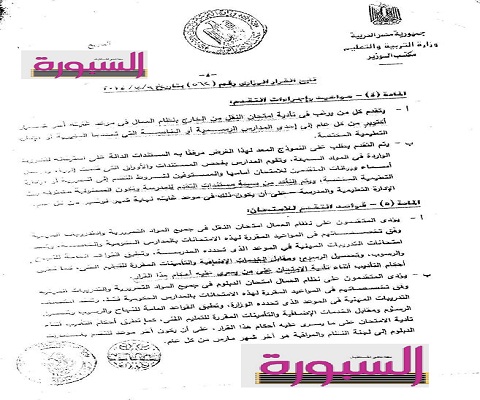 بالمستندات| ننشر القرار الوزارى بشأن تنظيم التقدم من الخارج لامتحانات النقل