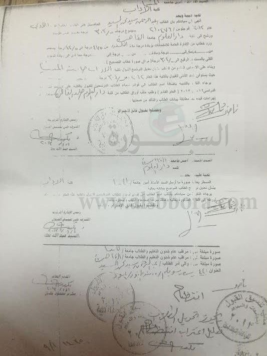 الطلاب عند تقدمهم للجامعات المصرية أصول الشهادات والأوراق للشهادة التى حصلوا عليها
