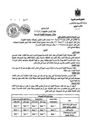 أصبح الاشتراك 20 جنيها للحلقة الابتدائية، و25 جنيها لـ1 و2 إعدادي، بعد أن كانت 10 جنيهات للمجموعة العادية و15 جنيها للمتميزة.