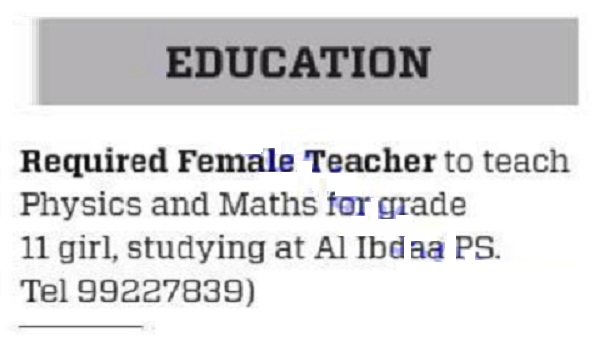 تعلن سلطنة عمان عن حاجتها للتعاقد مع معلمات في التخصصات التالية: