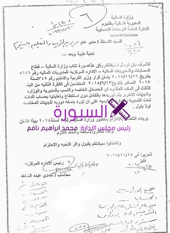 بالمستندات| المالية تطالب التعليم بتوريد الرسوم الدراسية بدون خصومات