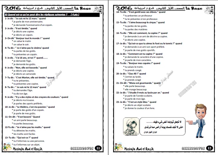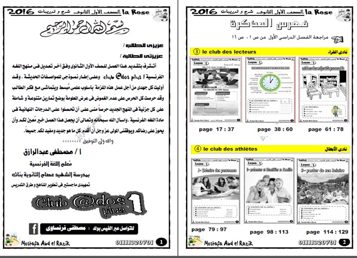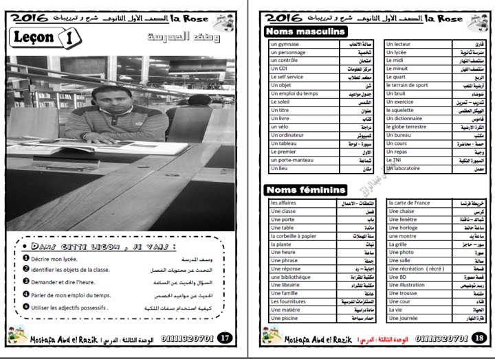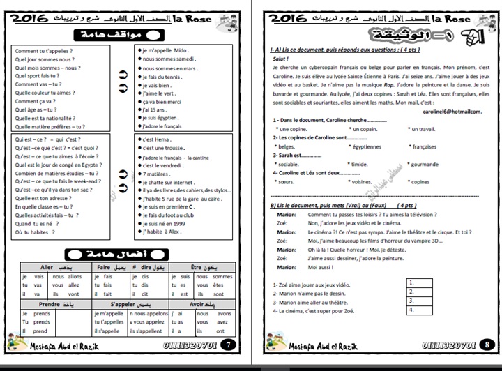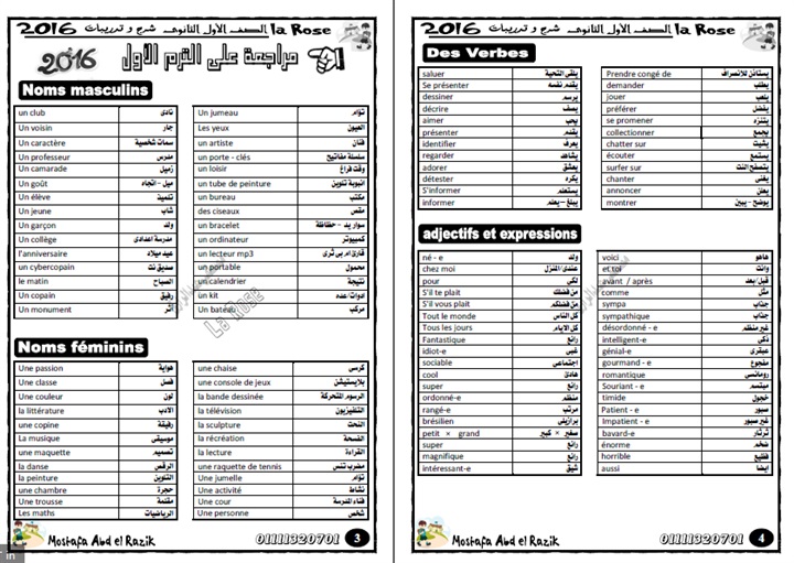 ننشر مذكرة الفرنساوى للتيرم الثانى الصف الأول الثانوى