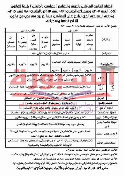 بالمستندات| ننشر جميع إجازات العارضة والاعتيادية للمعلمين والاداريين فى قانون 155