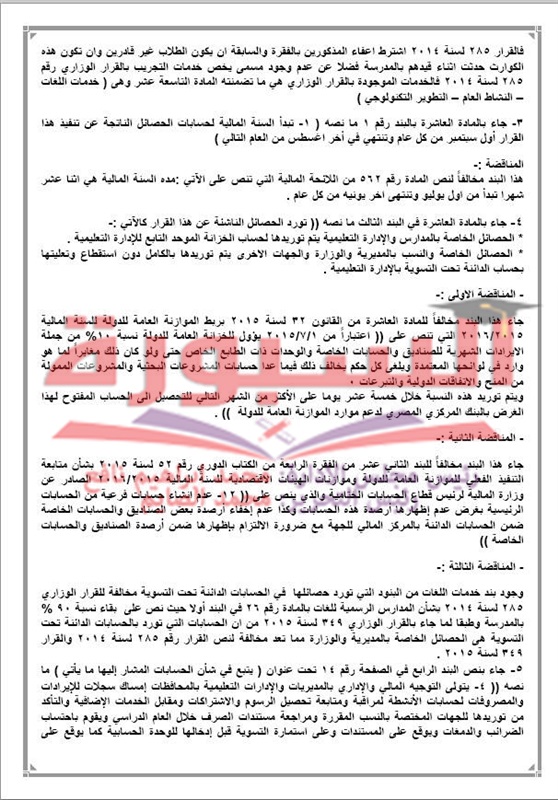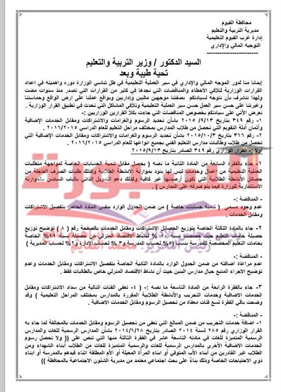 بالمستندات| ننشر قرارات وزارة التربية والتعليم من المتحصلات المالية من الطلاب.. ورد الموجهين الماليين بالتعليم
