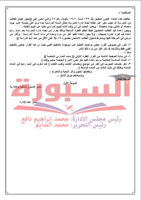 ينشر موقع "السبورة التعليمى" قرارات وزارة التربية والتعليم من المتحصلات المالية من الطلاب.. ورد الموجهين الماليين عليها والمتناقضات التى وردت من الوزارة الى أكثر من إدارة تعليمية بهذا الشأن.