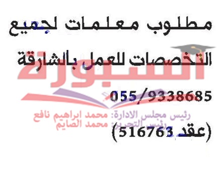 تعلن مدرسة خاصة في إمارة الشارقة بدولة الإمارات العربية والمتحدة عن حاجتها للتعاقد مع معلمين في جميع المواد وذلك وفقا للشروط التالية: