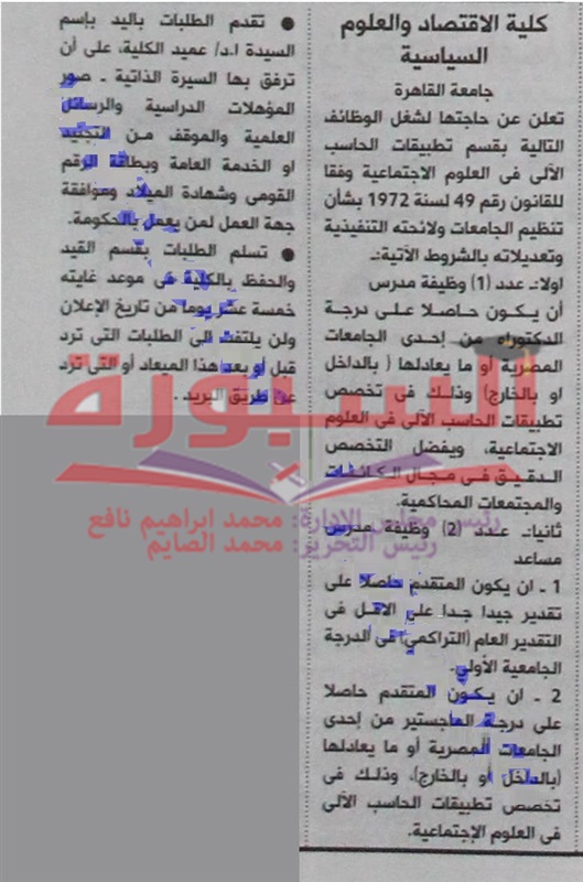 تعلن جامعة القاهرة عن وظائف شاغرة لأعضاء هيئة التدريس وذلك في التخصصات التالية: