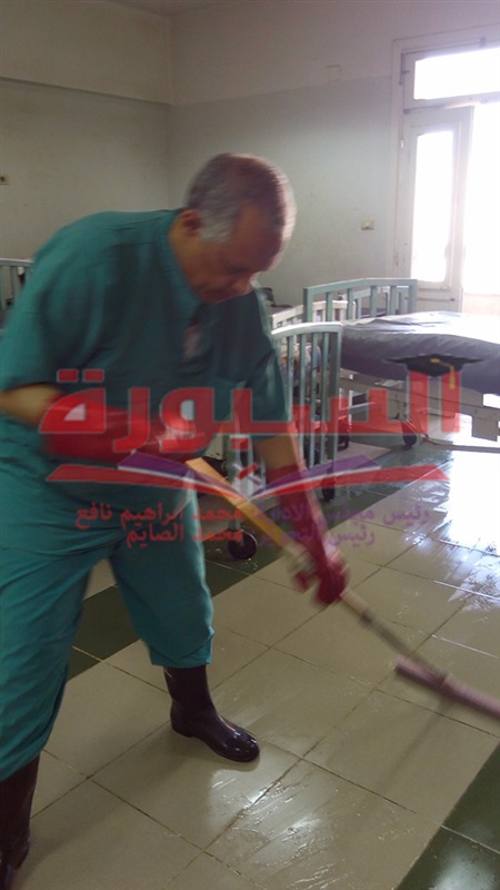 بالصور.. صدق أو لا تصدق.. رئيس قسم جراحة الاطفال بمستشفى جامعة أسيوط ينظف حمامات المرضى.. ويفرش "الأسرة"
