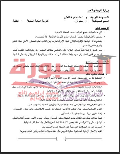 بالمستندات| شروط الحصول على وظيفة معلم أول بالتربية والتعليم