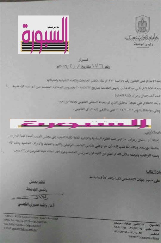 بالمستندات| إحالة دكتور بجامعة بورسعيد لمجلس تأديب