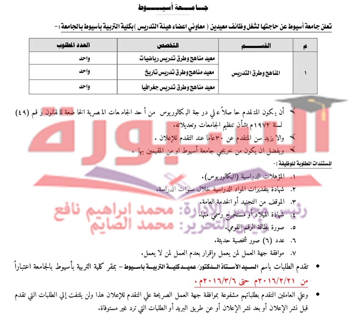 4- أن يكون المتقدم من خريجي جامعة أسيوط، أو من المقيمين بالمحافظة.