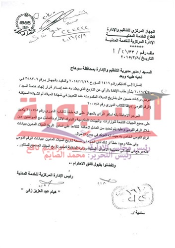 أوضح جهاز التنظيم والادارة تاريخ الميلاد المعتد به عند إحالة العامل للتقاعد، حيث طالبت مديرية التنظيم والادارة بسوهاج الافادة بالرأي بخصوص احتساب انهاء خدمة العامل هل يتم وفقا لشهادة الميلاد ام الرقم القومي وفق المستندات المقدمة منه عند التعيين.