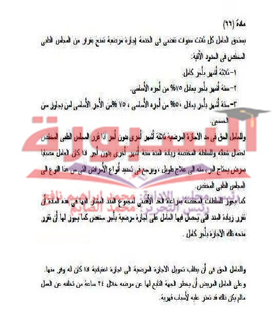 يستحق العامل كل ثلاث سنوات تقضي في الخدمة إجازة مرضية بقرار من المجلس الطبي المختص في الحدود الاتية: