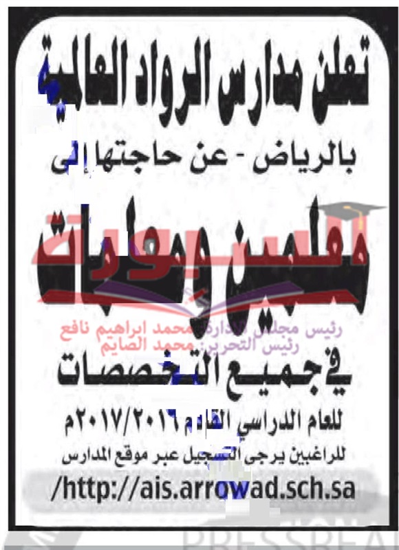 مدارس الرواد السعودية تعلن عن وظائف شاغرة للمعلمين والمعلمات في جميع المواد