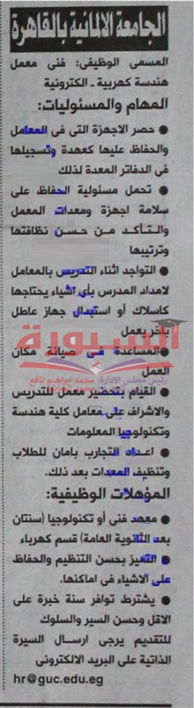 تعلن الجامعة الألمانية في القاهرة عن وظائف شاغرة وذلك في التخصصات التالية: