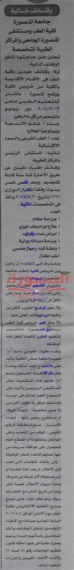 تعلن جامعة المنصورة عن حاجتها الى أعضاء هيئة تدريس وذلك في التخصصات التالية