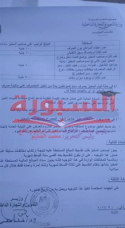 بالمستندات| ننشر لائحة الجزاءات في منظومة الخبز الجديدة