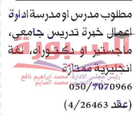 يعلن معهد تعليمي في دولة الامارات العربية المتحدة عن وظائف شاغرة لأعضاء هيئة التدريس وذلك في التخصصات التالية: